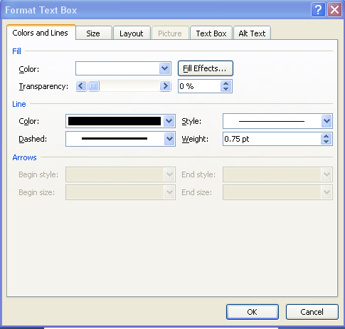 Once you have placed the hyperlink in the text box hover over the text box borders with your mouse until your mouse arrow turns into a cross. Right click on the border and click “edit text box”. The pop-up below will appear. When it does set your color and line parameters for the box: