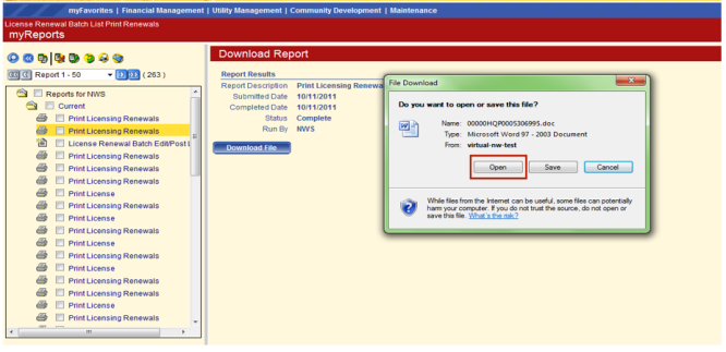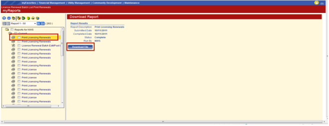 Click on the Print Licensing Renewals link. Click Download File to download the renewal forms.