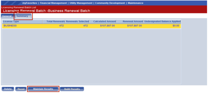 Click on the Summary tab. Double check the number of total renewals. If the number seems correct, click on Maintain Results.