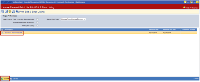 On the Print Edit and Error Listing you can choose the preferred report you would to print, or simply view the default setting. Click on SHOW PREFERENCES and these boxes will appear, allow for the custom Edit & Error Listing. (Remember to highlight the batch and click on Submit.