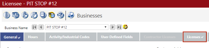 Click on the folder next to the Licensee and highlight the Businesses option:
