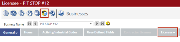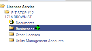Click on the folder next to the Licensee and highlight the Businesses option: