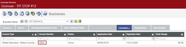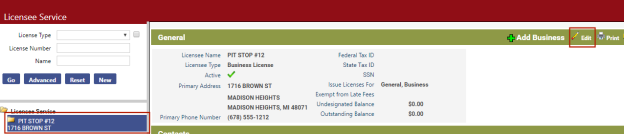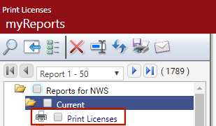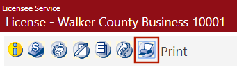 Occasionally, you will need a new copy of a previously printed license or renewal letter. Simply go to the License edit mode and use the Printer bubble.