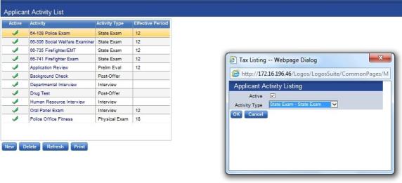 - Activities allow authorized users to add or maintain any events (e.g., tests) that are used to measure an applicant’s competence in a particular area.