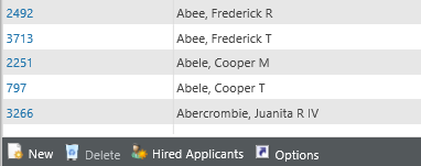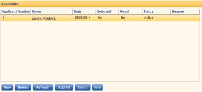 At the bottom of the results grid, click Hired Applicants for the Hired Applicant List to open.