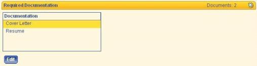 The Required Documentation title bar allows users to view which documentation is required for this posting, and which pieces of documentation the applicant has or has not submitted. If the applicant is associated with multiple postings, documentation needs to be submitted only once to apply to all postings where it is required.