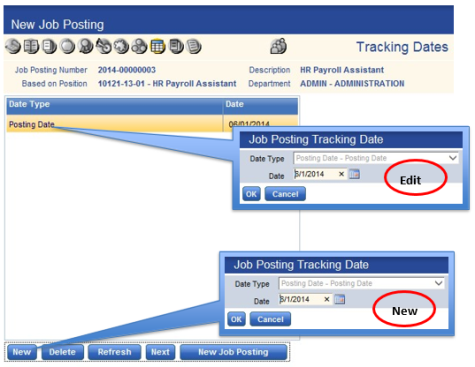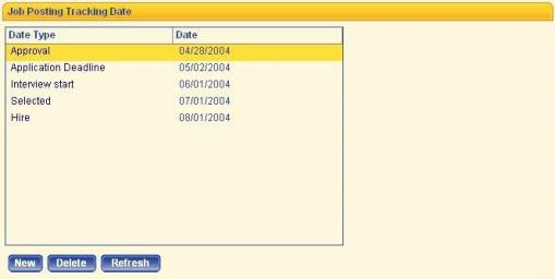 - Job Posting Tracking Date allows authorized users to add or maintain a tracking date for events (e.g., Posted Date) pertaining to a job posting.