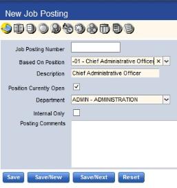 - Internal Only - This control indicates whether this position should be filled internally. The organization may post internally first and then widen the search if an appropriate applicant is not found. Some positions (e.g., Police Sergeant) may be a promotion that requires the job go to an existing employee. The control default is deselected.