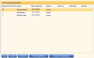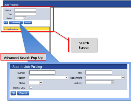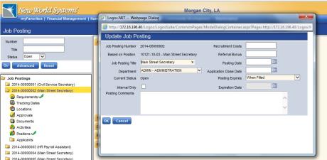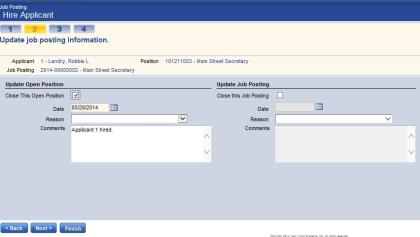The Job Posting serves as the connection between Position Control and Applicant Tracking. A Job Posting in its simplest form is a piece of paper pinned to a bulletin board that lists a job opening. In more detail, the posting includes information about the job (duties, requirements, and salary), how and when to apply for that job. Applicants are then associated with that Job Posting, are evaluated based on the requirements of the job, and one is selected.