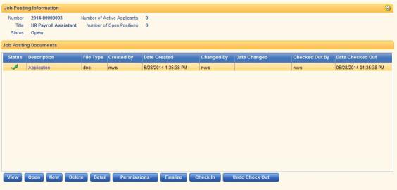 - Job Posting Education allows authorized users to add documents to a job posting.