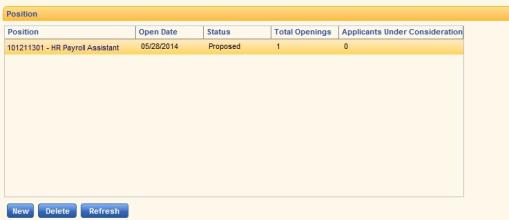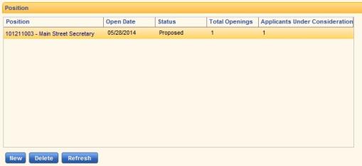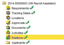 The Positions title bar allows users to view the actual positions tied to this job posting for which the applicant has been or is being considered. It can be used to see if an applicant has ever been considered for a position, how many positions the applicant has been considered for, or give the applicant the status of his or her application at their request.