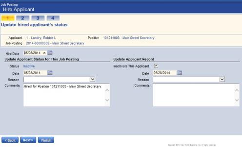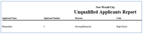 Reasons why the Applicant’s status on a Job Posting is what it is. Examples might be Applied, Not Qualified, Not Hired, or Withdrew. |