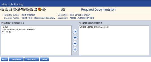 - Required Documentation allows authorized users to select the documentation that the applicant must provide to be considered for the job posting.