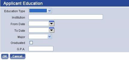 Use this list to enter Education Types that might be required or desired for an applicant to obtain, or the Education Types an Applicant might possess. |