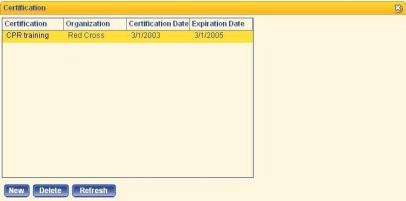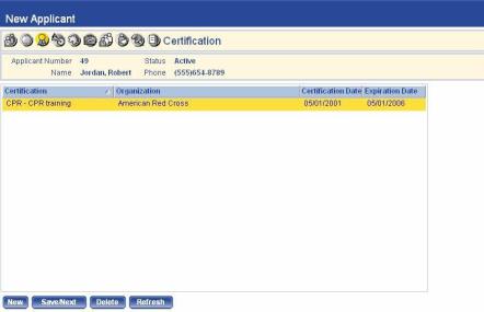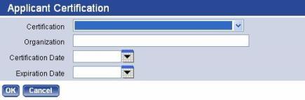 The Certification qualifications section allows users to view and maintain the certifications that the applicant has completed.