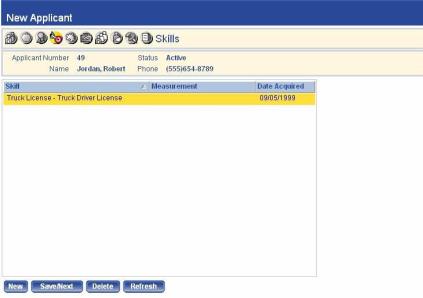 The Skills qualifications section allows users to view and maintain the skills that the applicant possesses.