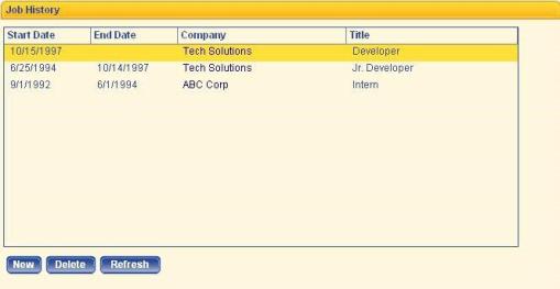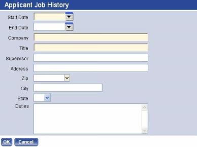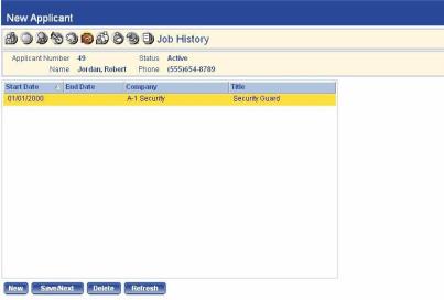 The Job History attribute allows authorized users to view and maintain the applicant’s employment history.