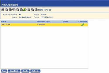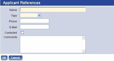 Various types of References an Applicant may submit, such as Personal or Professional. |