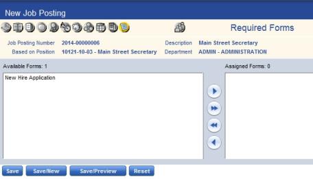 - Required Forms allow authorized users to select the forms (e.g., application) the applicant will be required to complete to be considered for the position.