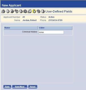 The User-Defined attribute allows authorized users to maintain the user-defined information recorded for the applicant.