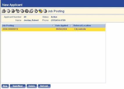 The Job Posting workflow page allows authorized users to view and add job postings to an applicant.