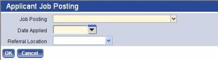 The Applicant Job Posting pop-up page allows authorized users to associate applicants to job postings.