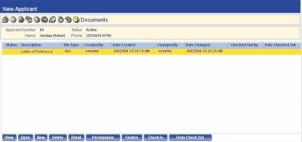 The Documents page allows authorized users to attach documents to an applicant. These documents may include a scanned-in resume, notes from the interviewer, etc.