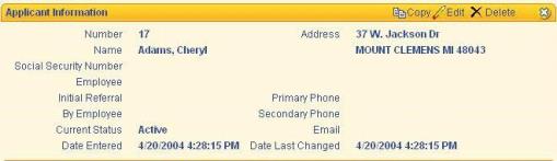 The Applicant Summary section allows users to view a summary of the information entered on the initial screen of the new applicant process. This information appears above the title bar for all attribute pages.