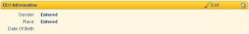 The EEO Information title bar, located below the applicant information title bar, shows data required to prove EEO compliance.