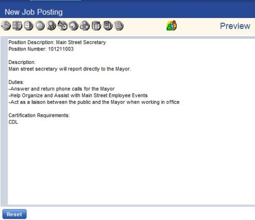 - Job Posting Preview allows authorized users to view a formatted job posting that can be printed and displayed, copied and pasted into job search Web sites, or copied to word or Web design software for additional editing.