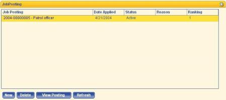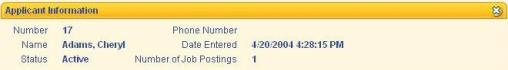 The Job Postings attribute allows users to see the postings for which an applicant has applied, plus information about status, documentation, and positions.