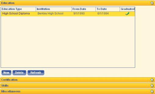 - Miscellaneous allows authorized users to add or maintain any additional qualifications that do not fit into Education, Skills, or Certification.
