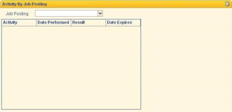 The Activities attribute allows users to view activities that have been performed by this applicant. The user has the option of seeing only those activities that pertain to a particular job posting.
