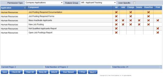The Select All Button at the bottom of the screen selects all filtered permissions.