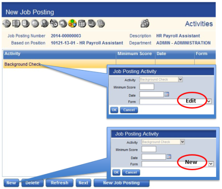 - Job Posting Activity allows authorized users to add or maintain an activity (such as a test) that measures a particular skill.