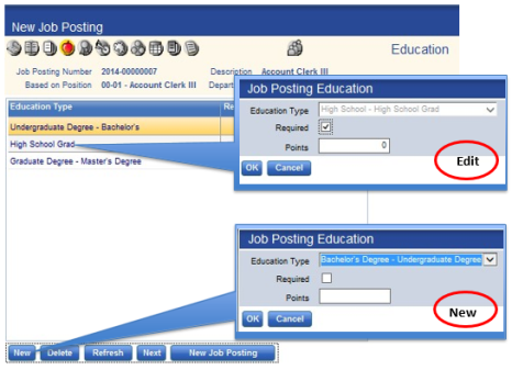 - Education allows authorized users to create and maintain the educational requirements of the job posting.