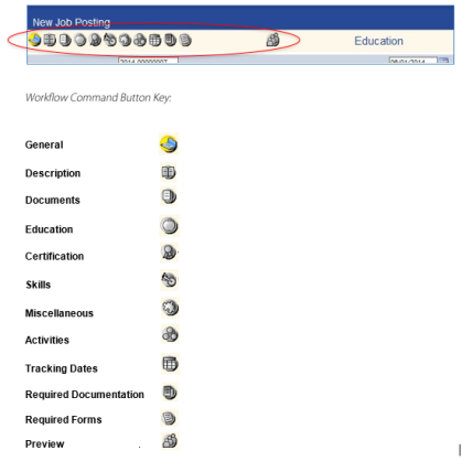 The New Job Posting allows authorized users to go through the workflow steps necessary to create a job posting. The New Job Posting interface consists of the following pages: