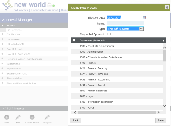 - Click Save. The Edit Process dialog will open, containing a grid of the department(s) you just added.