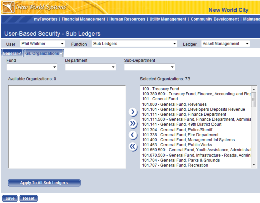 User-Based Security/Asset Management Sub Ledger