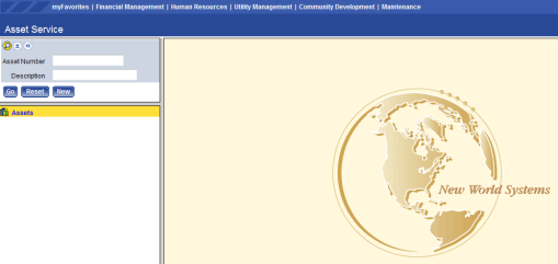 Welcome to the New World ERP Asset Management online guide. This online manual will guide you through the setup and processing aspects of the Asset Management module.