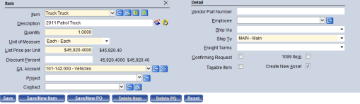 Ability to edit asset information from the requisition or purchase order entry screen. |