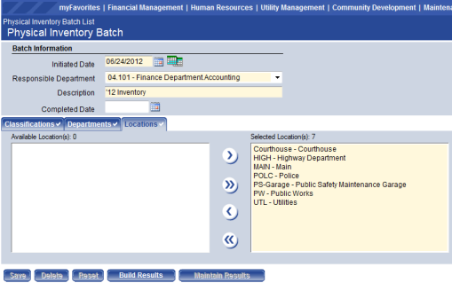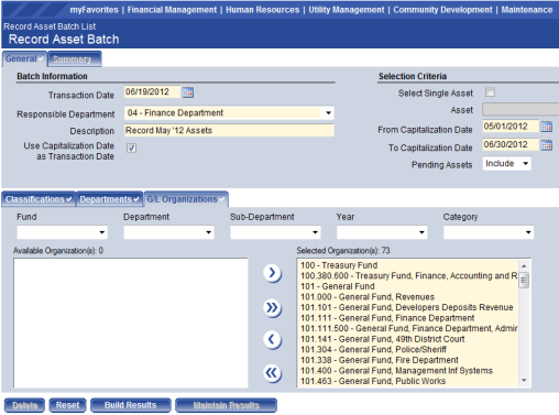Responsible Department – Select the department responsible for this asset journal batch. The departments in this list are limited based on the user’s authorizations assigned in Process Manager.