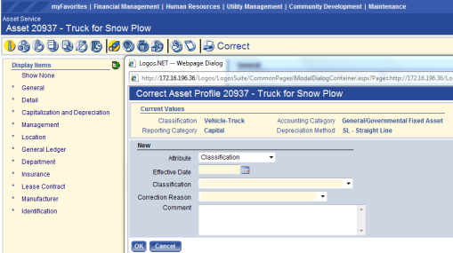 Listed in the Available Asset Classifications will be the Asset Classifications set up in the System Administrator Guide.