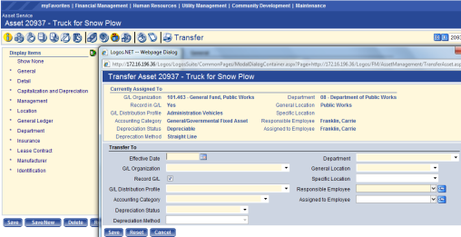 Asset Management General Ledger Transactions