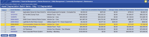 Asset Depreciation Batch Edit Listing |