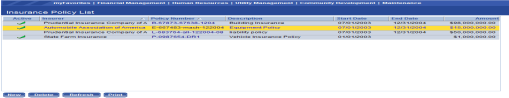 Maintenance>Financial Management>Asset Management>Insurance Policies