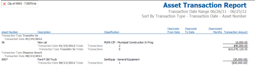 The Asset Transaction report shows all transactions for assets within a given date range.