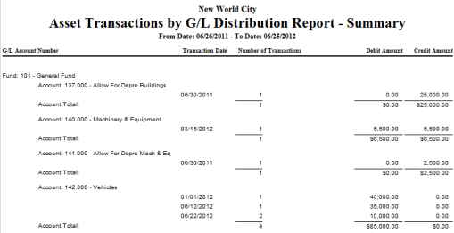 Asset Transactions by G/L Distribution Report