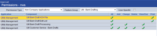 Security for the Bank Draft Processing is solely through Application Permissions; there is no User Based Security or Process Manager set up required.