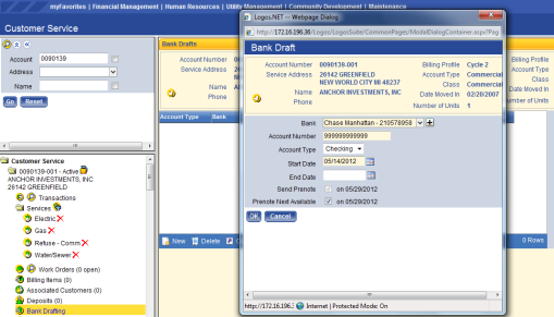 Bank Drafting will be entered and maintained at the account level in Customer Service: